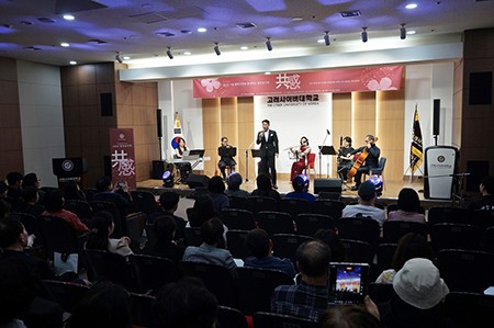 此次音乐会有钟路区地区居民、高丽Cyber大学在校生、普通市民等共100余人参加,分享了温暖的共鸣时光。是大学与地区社会共同呼吸、通过文化进行沟通的有意义的场合。