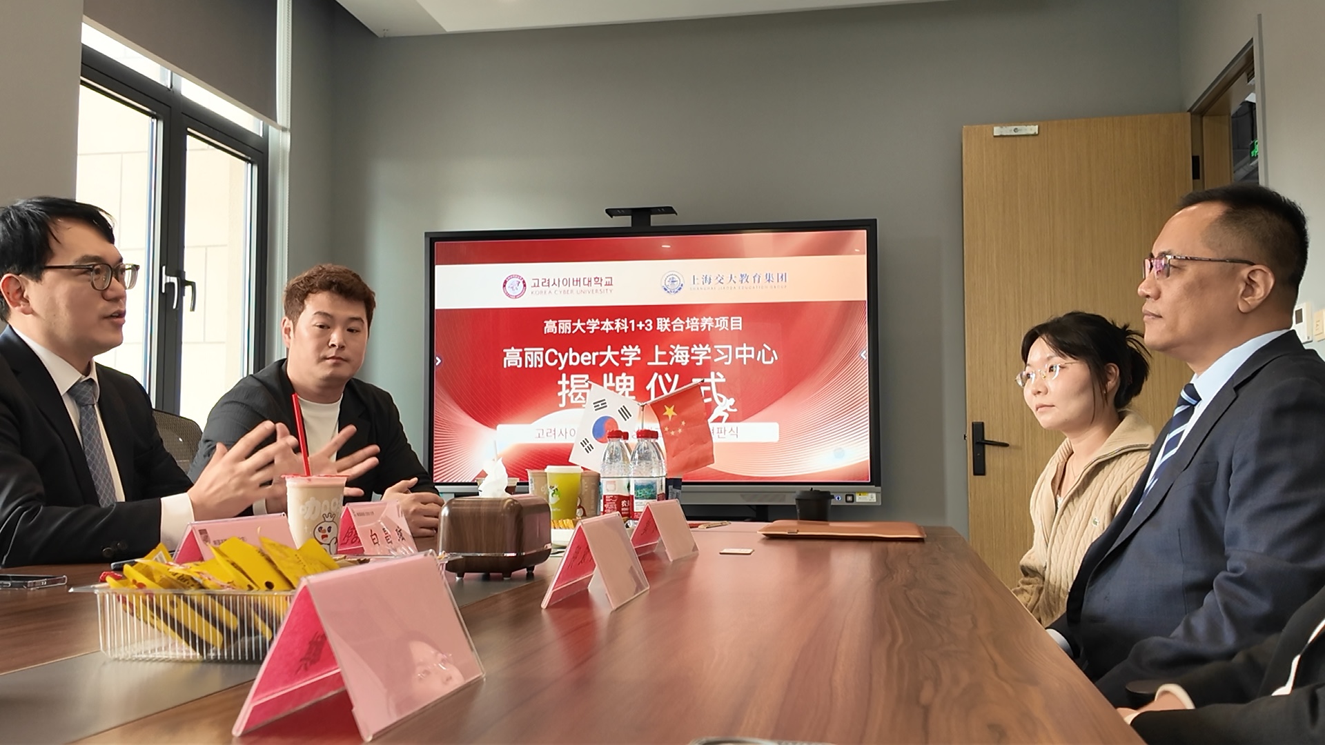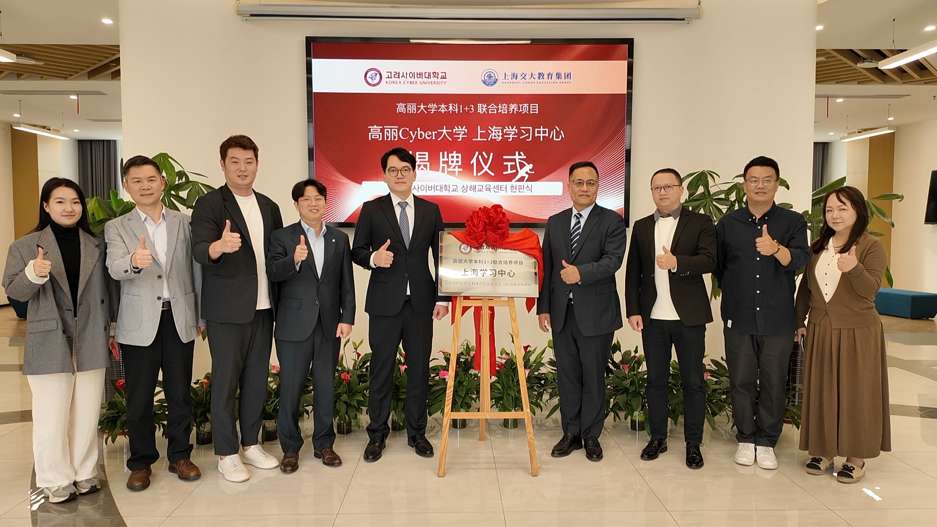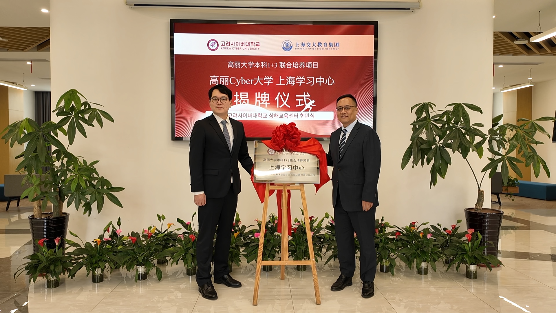 2025年10月27日,高丽大学本科1+3联合项目上海教学中心揭牌仪式在沪举行。高丽大学世宗校区入学宣传国际处处长金正郝、韩国高丽Cyber大学招生处处长白昌玹、高丽 Cyber 大学中国教育中心代表崔光彬与上海交通大学教育集团相关负责人共同为高丽大学本科 1+3 项目首个线下学习中心揭牌,标志着本项目正式迈入实体化运营新阶段。
